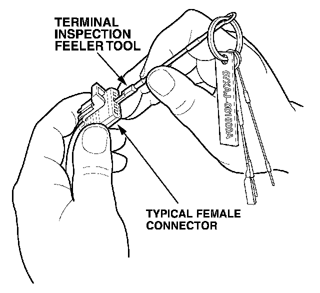 NOTE: Make sure you do not select a terminal tool that is larger than the mating male terminal because it would spread the female terminal and cause a loose fit.