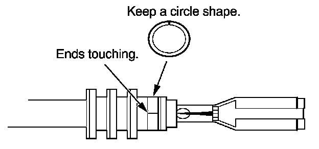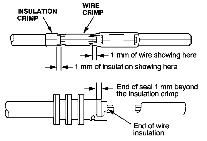 3. Strip the insulation off the end of the wire so the wire fits in the new terminal as shown. (If the wire has a wire seal, replace it with a new one from the kit.)