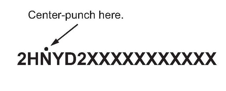 2. Center-punch a completion mark above the third character of the engine compartment VIN.