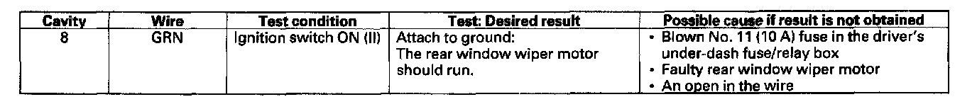 Rear Window Wiper Intermittent Control Unit Input Test1. Remove the left rear side trim panel.