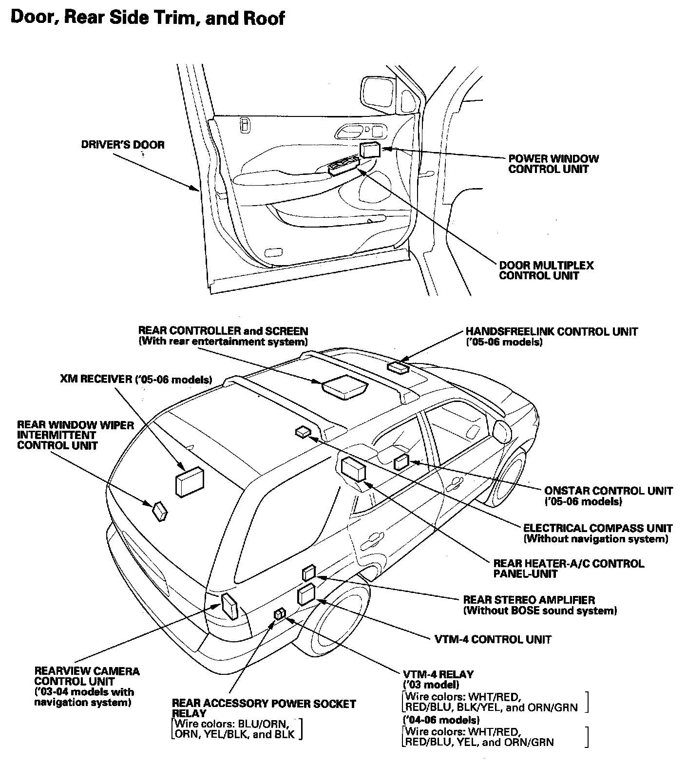 Relay And Control Unit Locations - Door, Rear Side Trim And Roof: