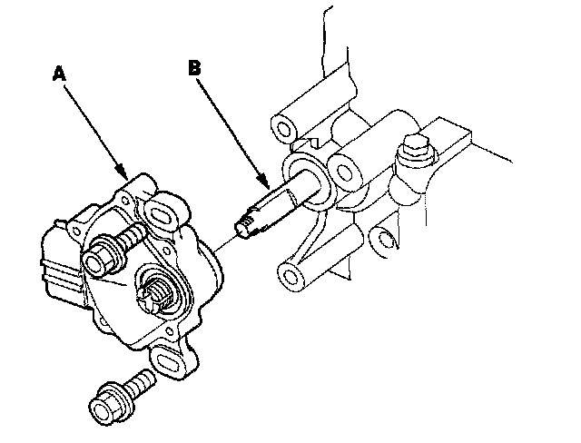 15. Install the transmission range switch (A) gently over the selector control shaft (B), and install the bolts loosely.