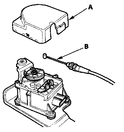 5. Remove the actuator cover (A), then remove the actuator cable (B) from the cruise control actuator.