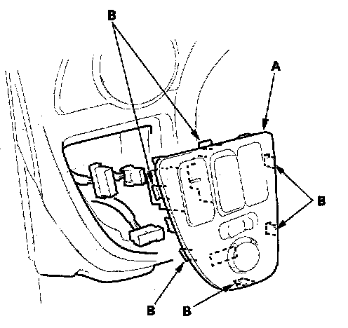 1. Gently pry up the driver's switch panel (A) to release the hooks (B), then pull out the panel.