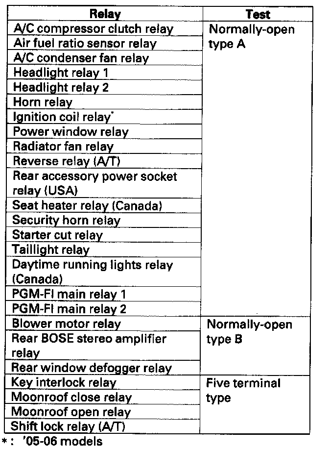 Home >> Acura >> 2006 >> RSX L4-2.0L >> Repair and Diagnosis >> Powertrain Management >> Computers and Control Systems >> Main Relay (Computer/Fuel System) >> Testing and Inspection