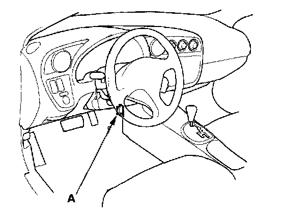 2. Connect the HDS or the Honda interface module (HIM) to the data link connector (DLC) (A) located under the driver's side of the dashboard.