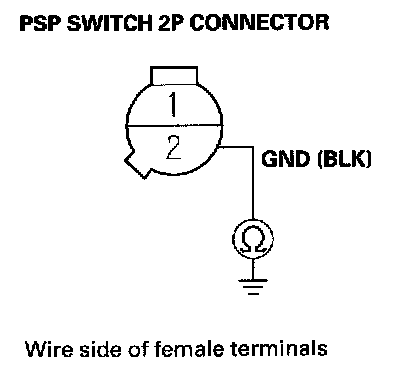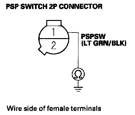 11. Check for continuity between PSP switch 2P connector terminal No. 1 and body ground.