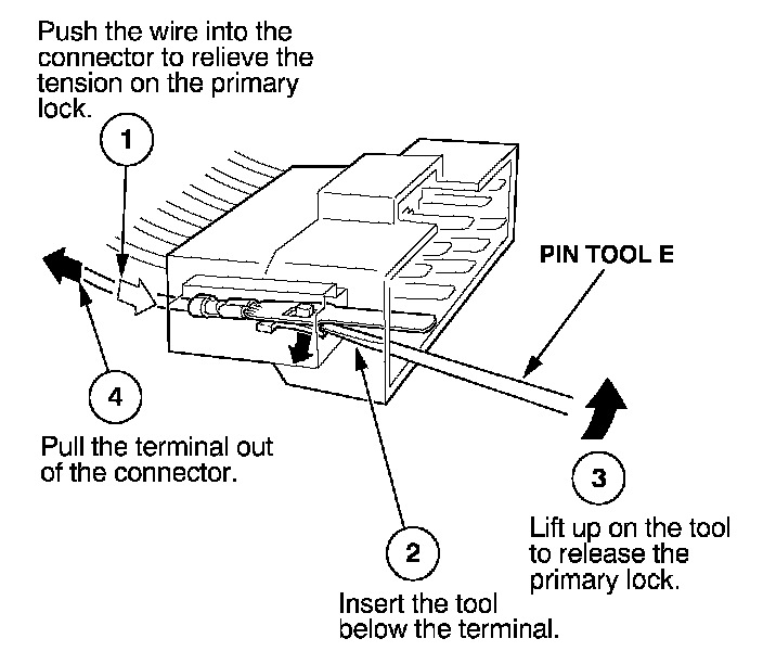 Before you begin, inspect the wire you are about to repair for damage and length. Make sure the wire will be long enough to make a terminal repair without stretching it when you reinstall the terminal in the connector. If the wire is too short, or if access to the connector is too restricted to make a terminal repair, you may need to install a pigtail terminal (a short length of wire with a factory-crimped terminal on it). Refer to HOW TO INSTALL PIGTAIL TERMINALS.