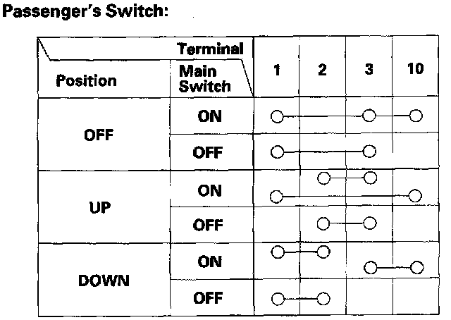 5. If the continuity is not as specified, replace the passenger's switch.