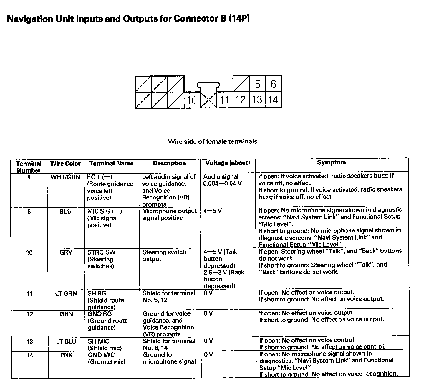 Navigation Unit Inputs And Outputs For Connector B(14P):