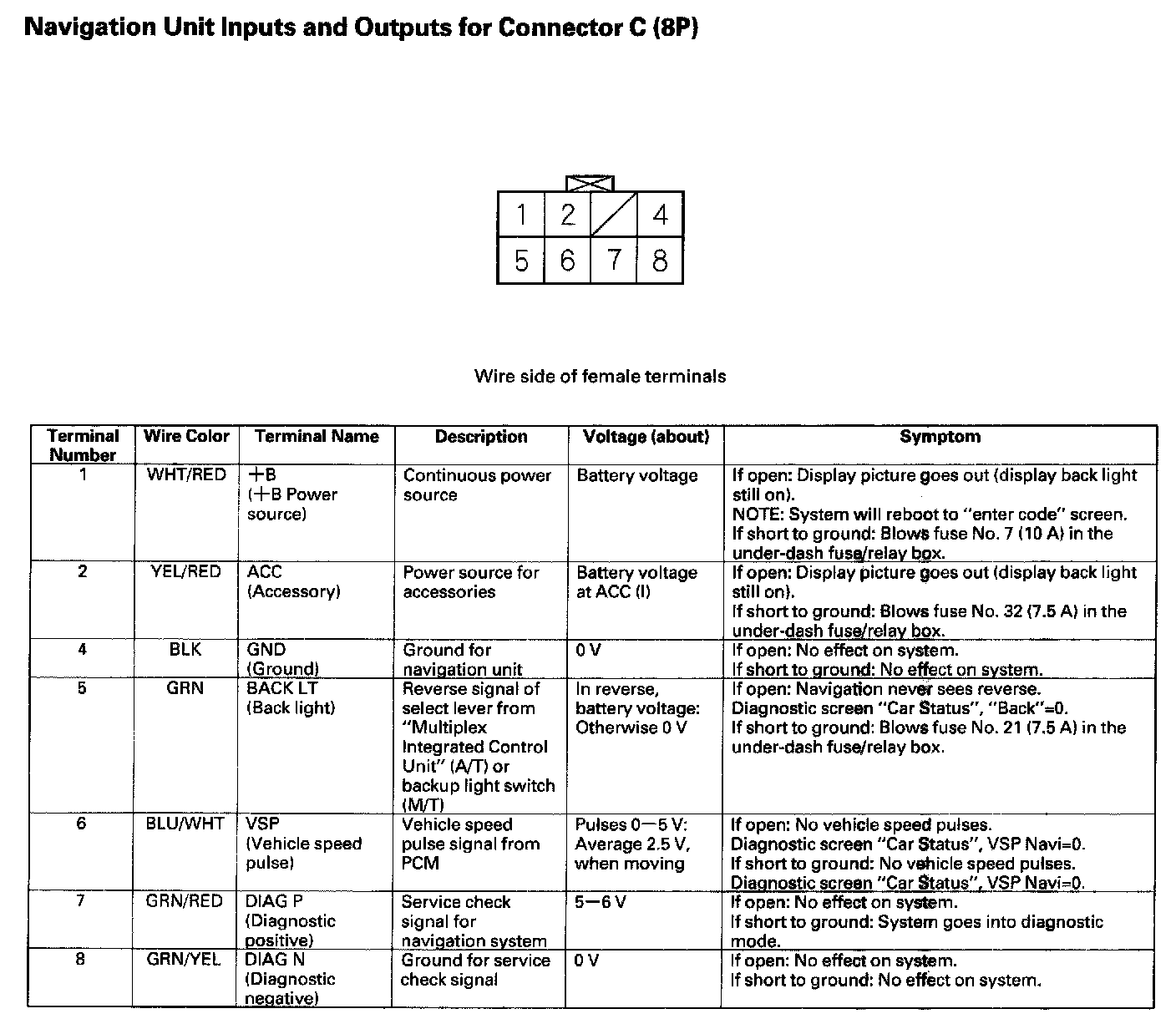 Navigation Unit Inputs And Outputs For Connector C(8P):