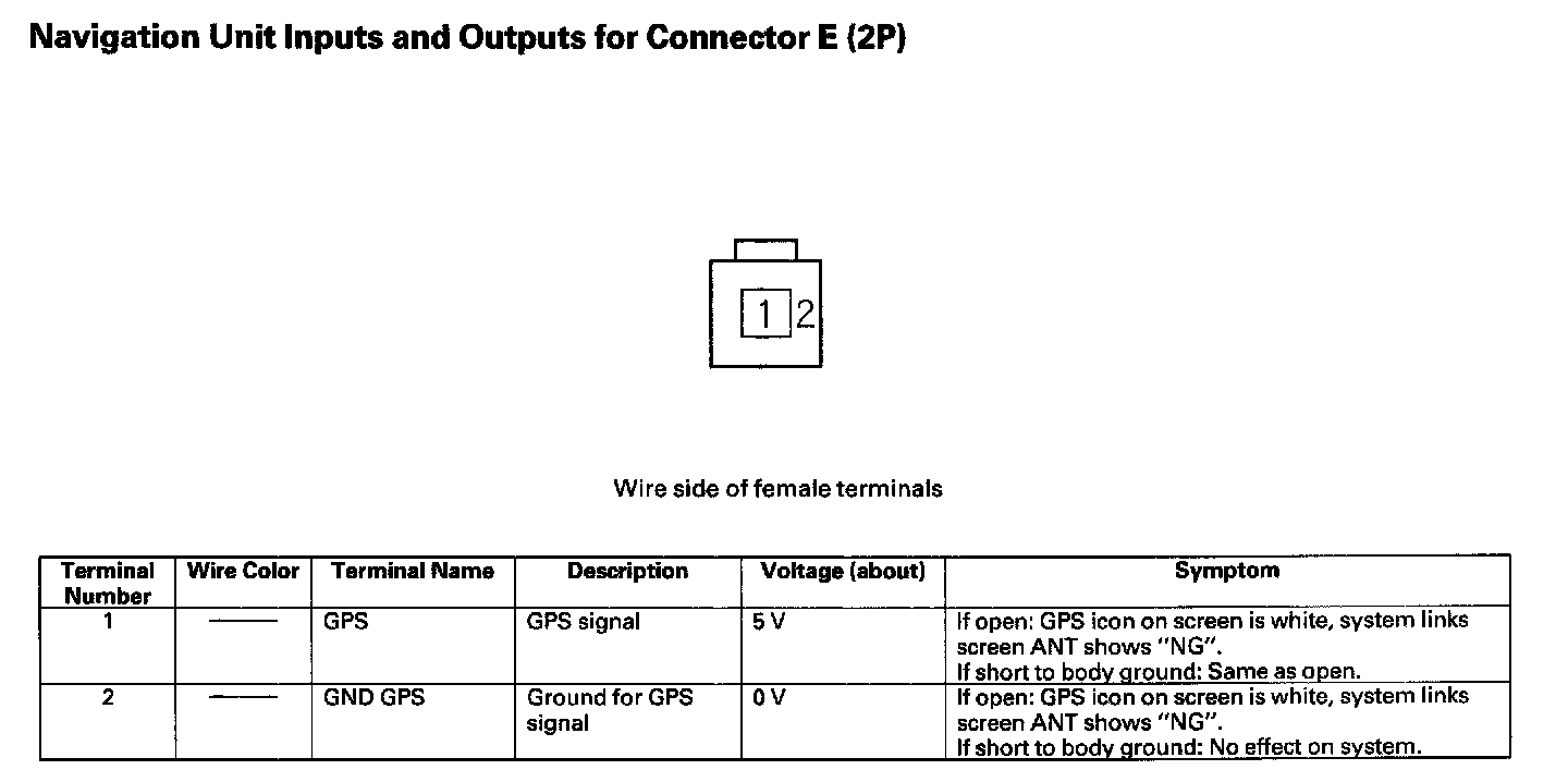 Navigation Unit Inputs And Outputs For Connector E(2P):