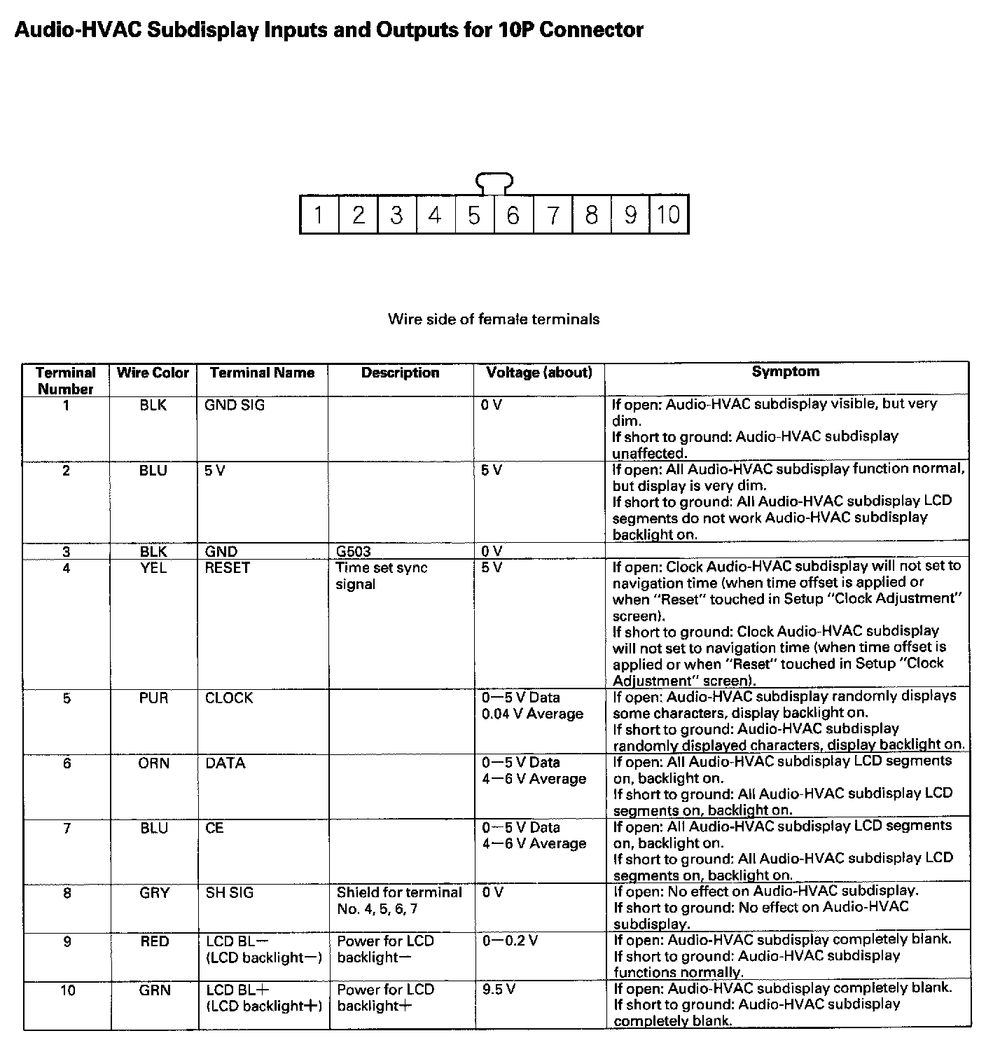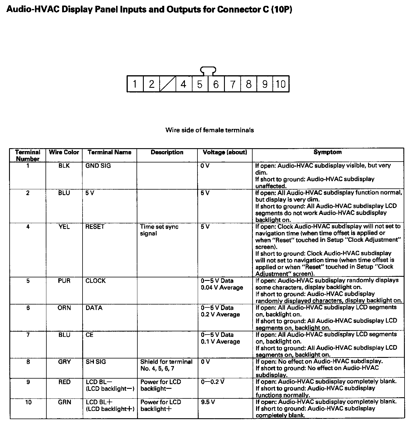 Audio-HVAC Subdisplay Unit Inputs And Outputs For 10P Connector: