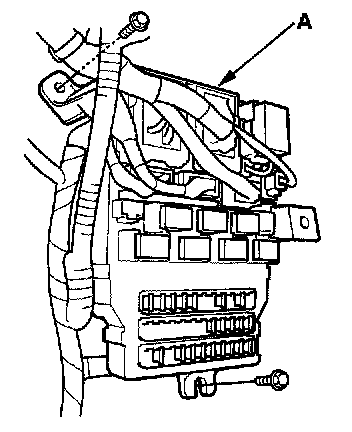 4. Disconnect the connectors from the fuse side of the under-dash fuse/relay box (A).