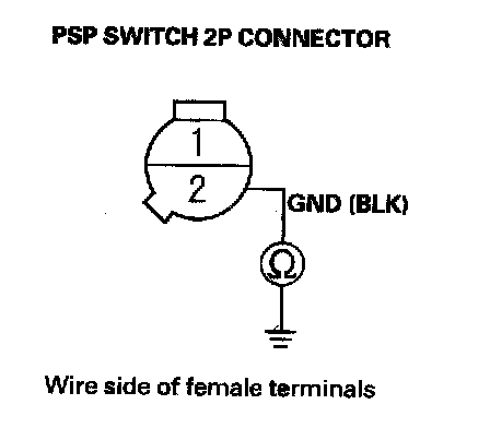 24. Check for continuity between PSP switch 2P connector terminal No. 2 and body ground.