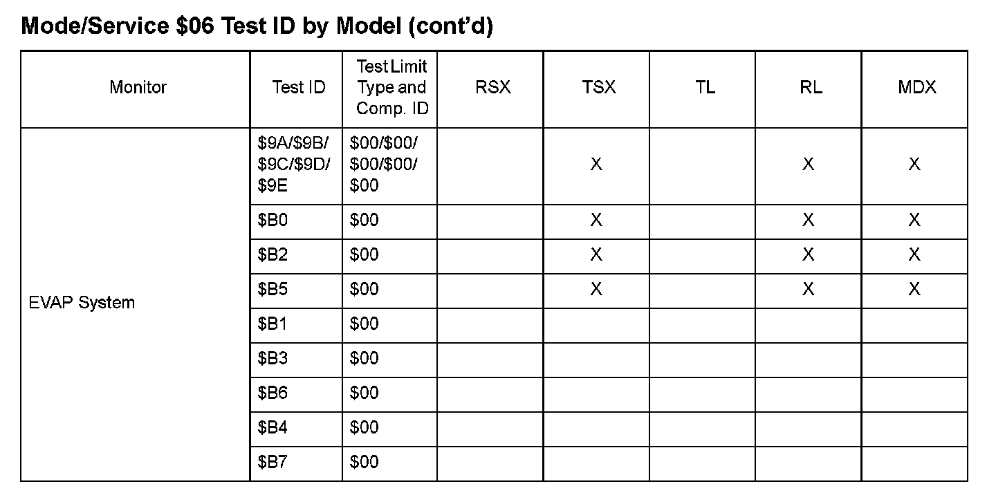 Home >> Acura >> 2006 >> TSX L4-2.4L >> Repair and Diagnosis >> Powertrain Management >> Computers and Control Systems >> Testing and Inspection >> Mode 6 Data