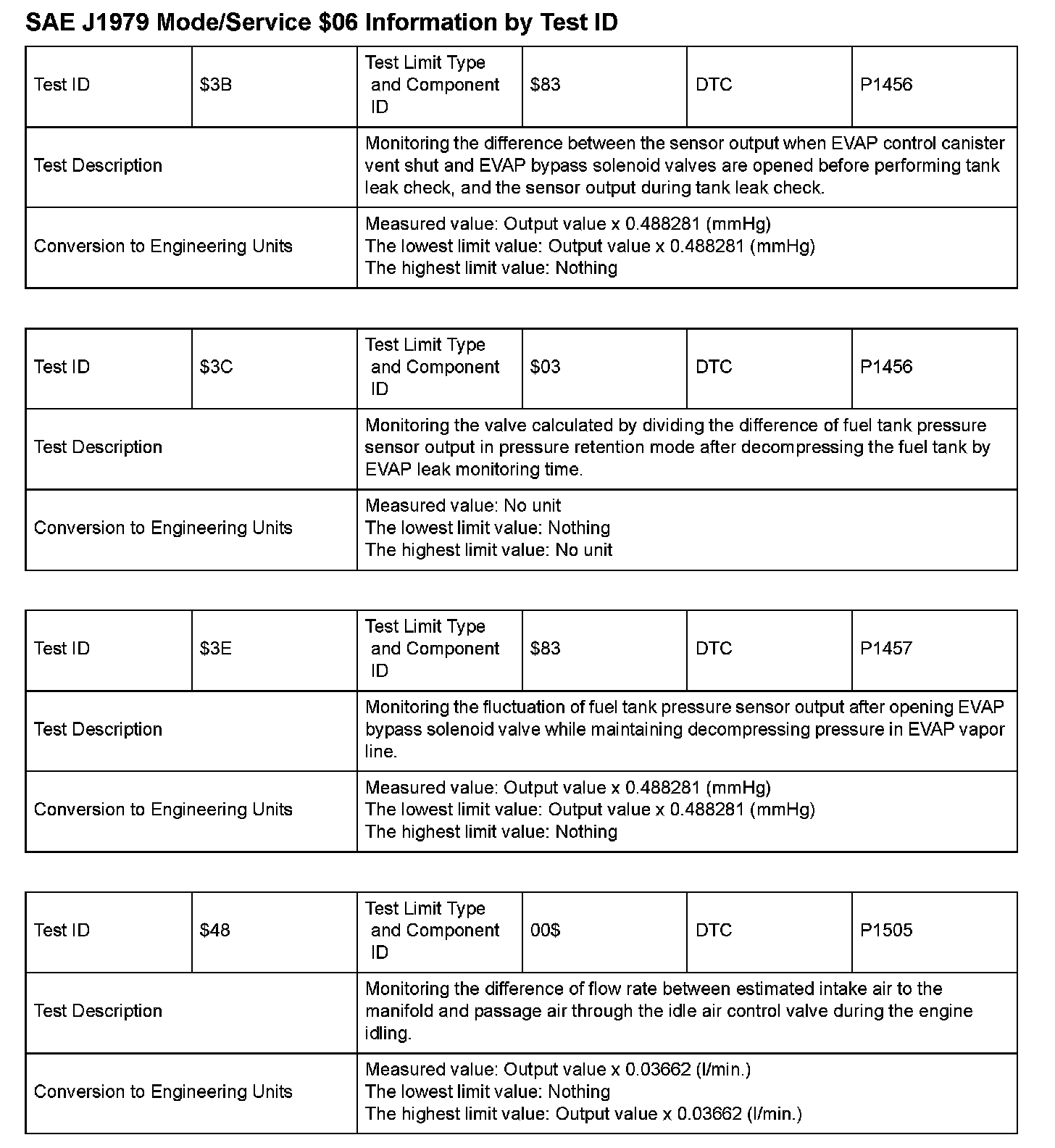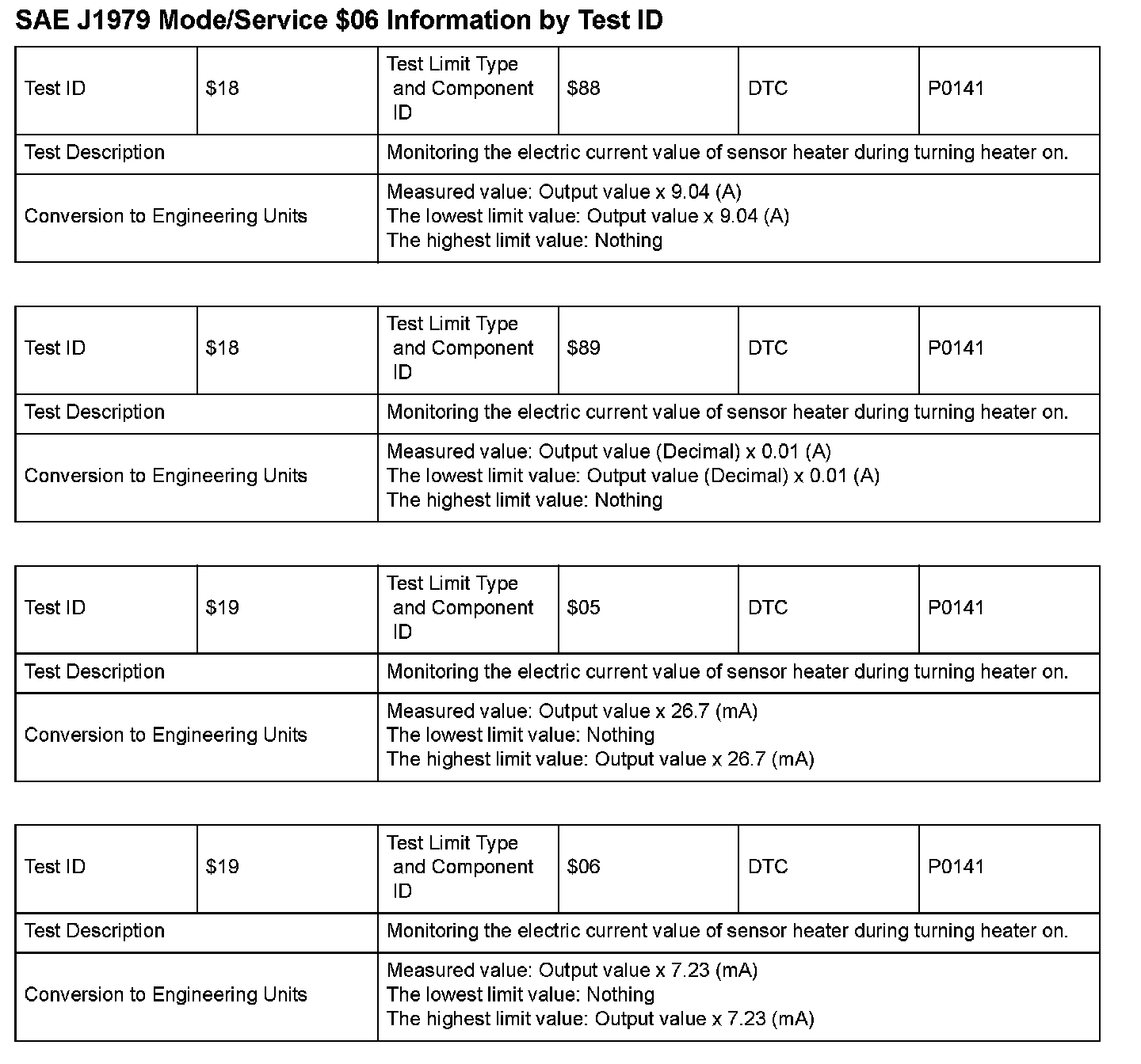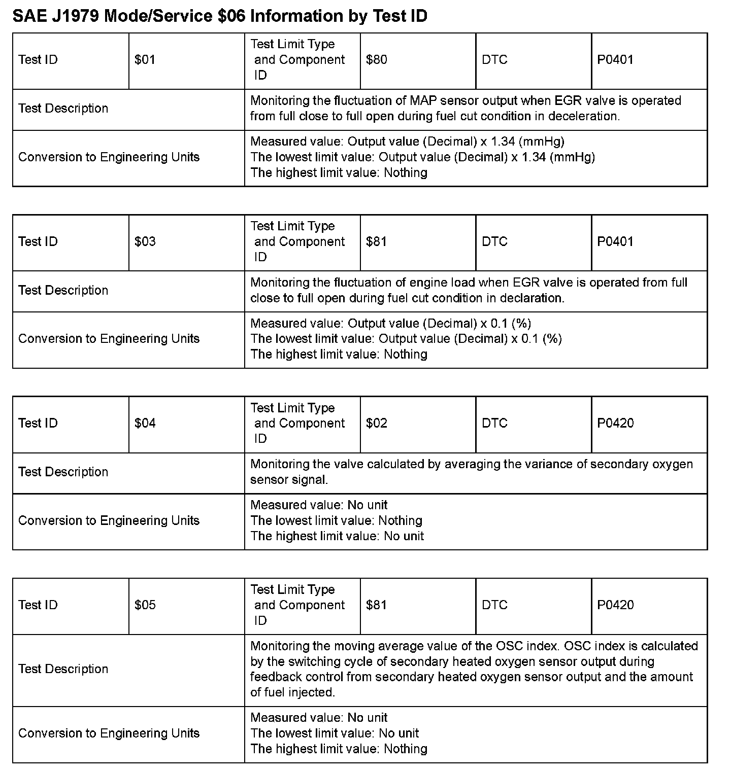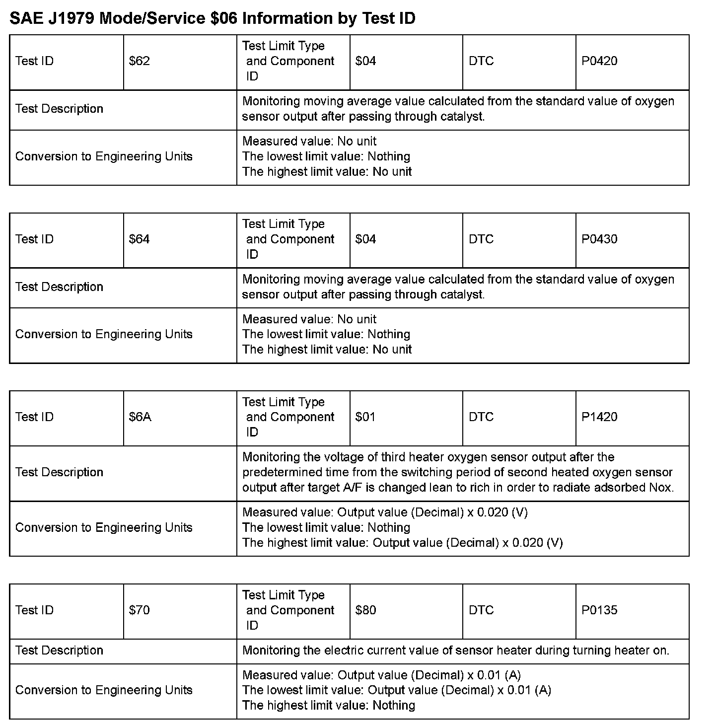 SAE J1979 Information By Test ID ($01 - $05):