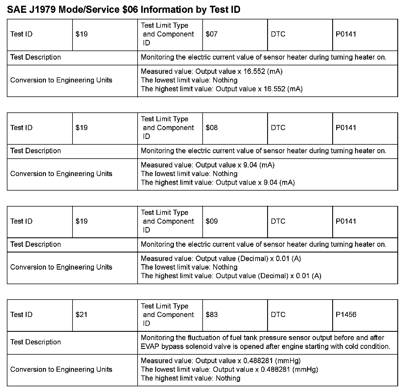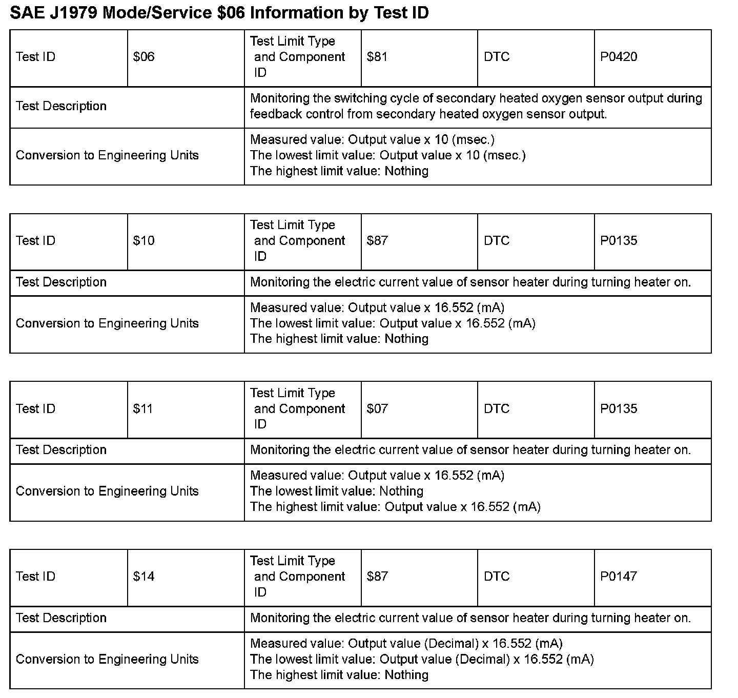SAE J1979 Information By Test ID ($06 - $14):