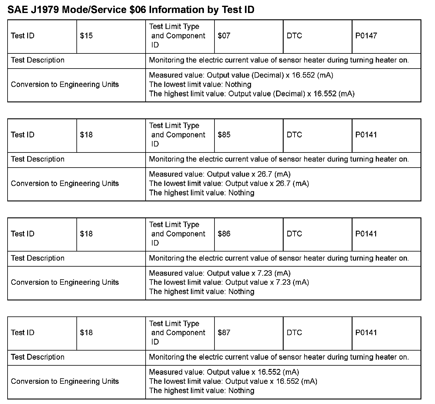 SAE J1979 Information By Test ID ($15 - $18):