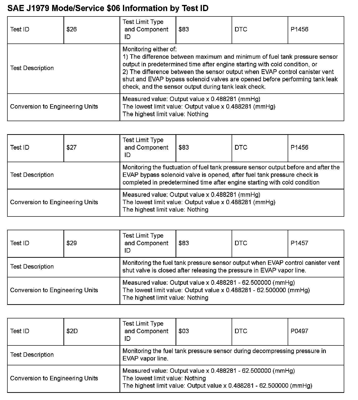 SAE J1979 Information By Test ID ($26 - $2D):