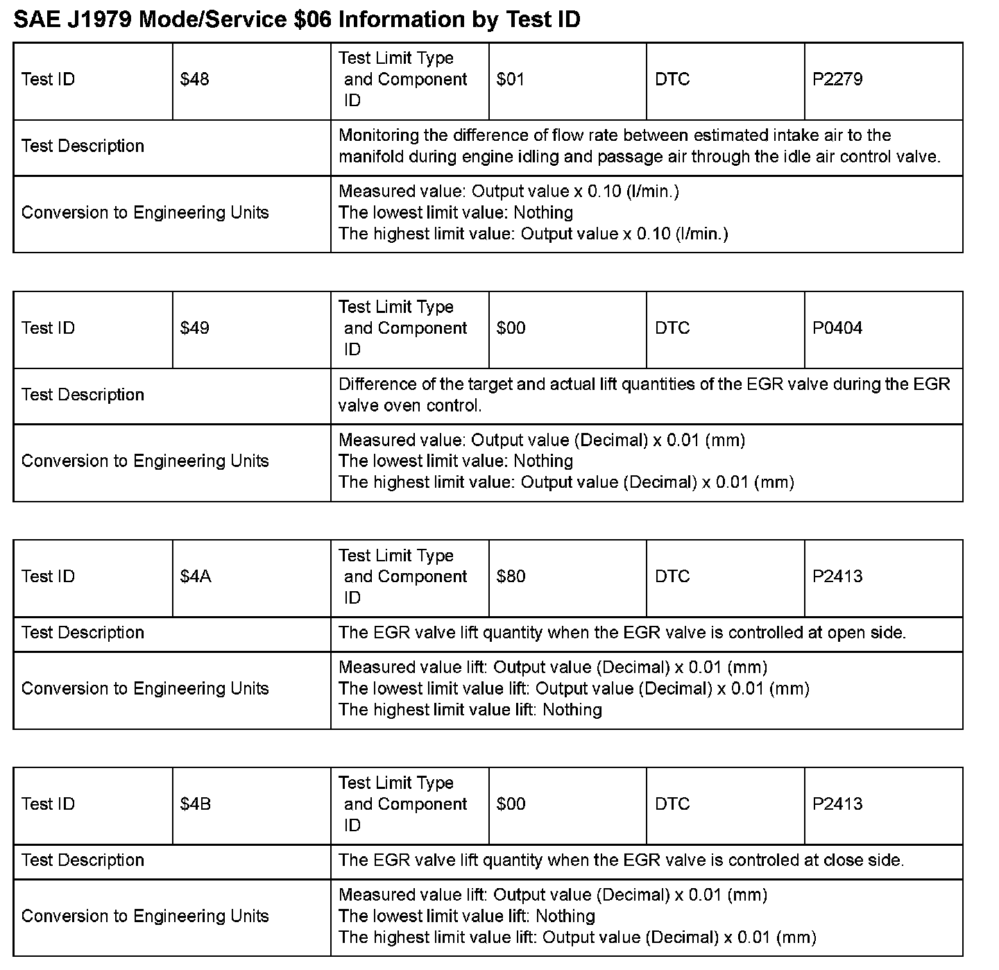 SAE J1979 Information By Test ID ($48 - $4B):