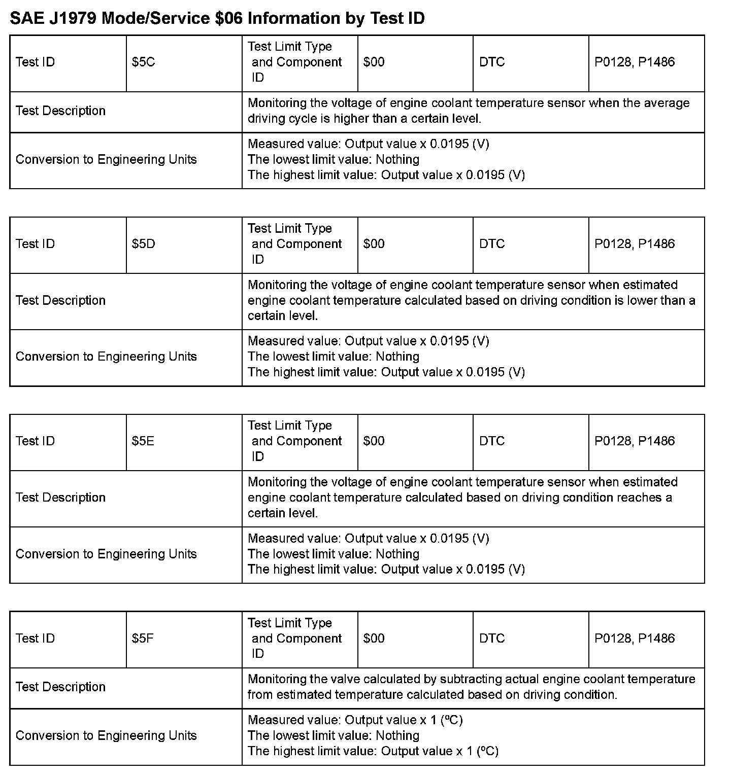 SAE J1979 Information By Test ID ($5C - $5F):