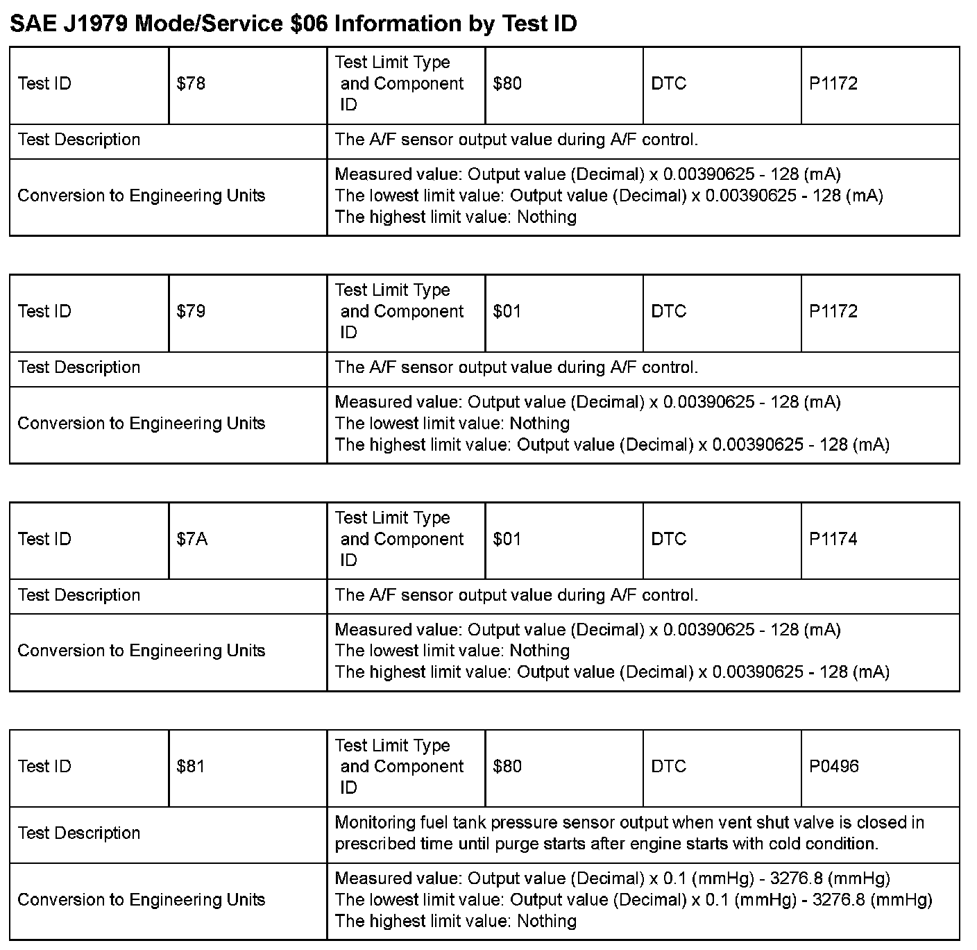 SAE J1979 Information By Test ID ($78 - $81):