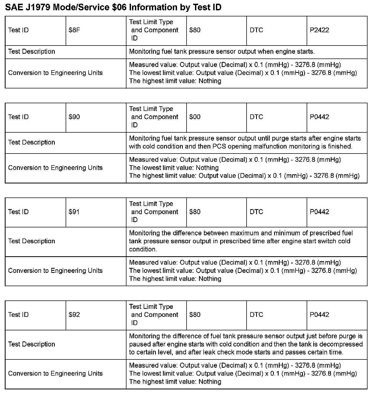 SAE J1979 Information By Test ID ($8F - $92):