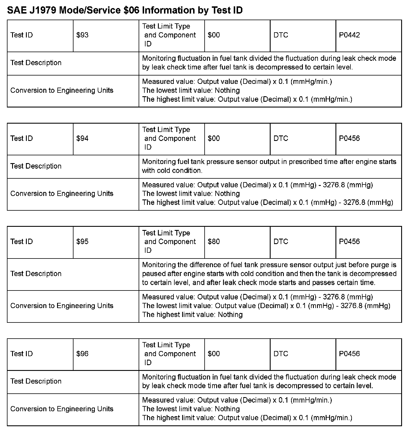 SAE J1979 Information By Test ID ($93 - $96):