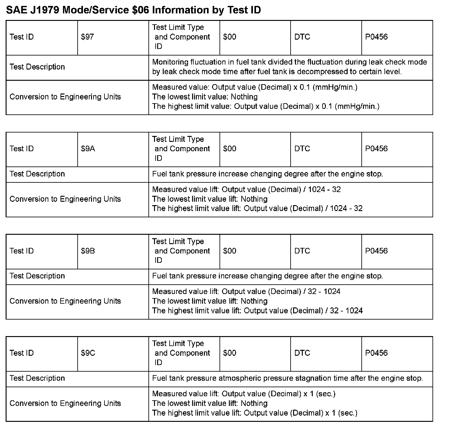 SAE J1979 Information By Test ID ($97 - $9C):