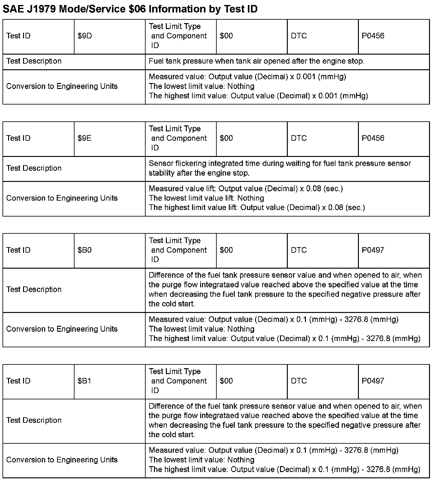 SAE J1979 Information By Test ID ($9D - $B1):