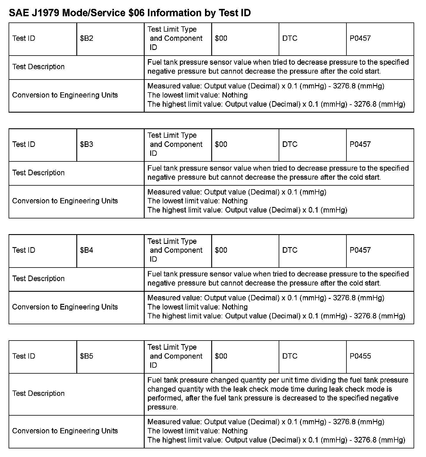 SAE J1979 Information By Test ID ($B2 - $B5):