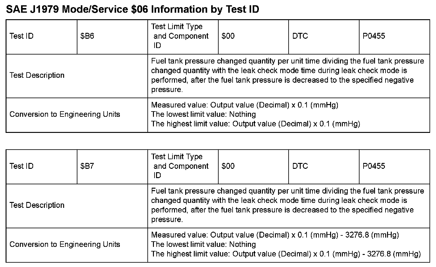SAE J1979 Information By Test ID ($B6 - $B7):