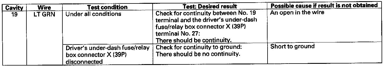 5. Disconnect the 28P connector again, and make this input test at the connector.