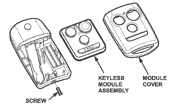 Replace the keyless module assembly (battery pack) in the remote transmitter.