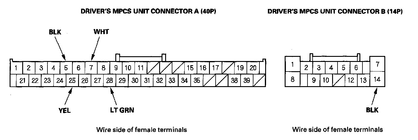 3. Disconnect the driver's MPCS unit connectors A (40P) and B (14P).