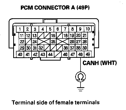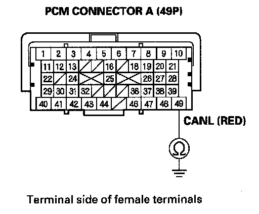 11. Check for continuity between PCM connector terminal A49 and body ground.