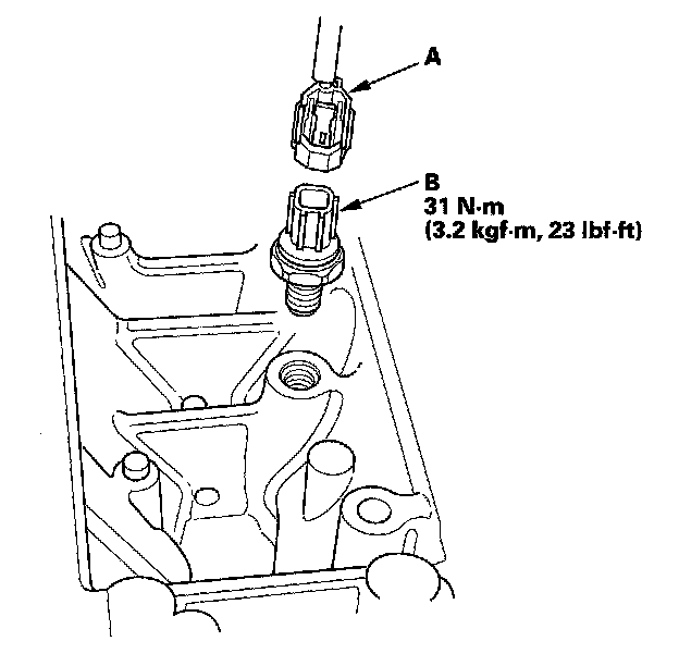 3. Disconnect the knock sensor 1P connector (A), then remove the knock sensor (B).