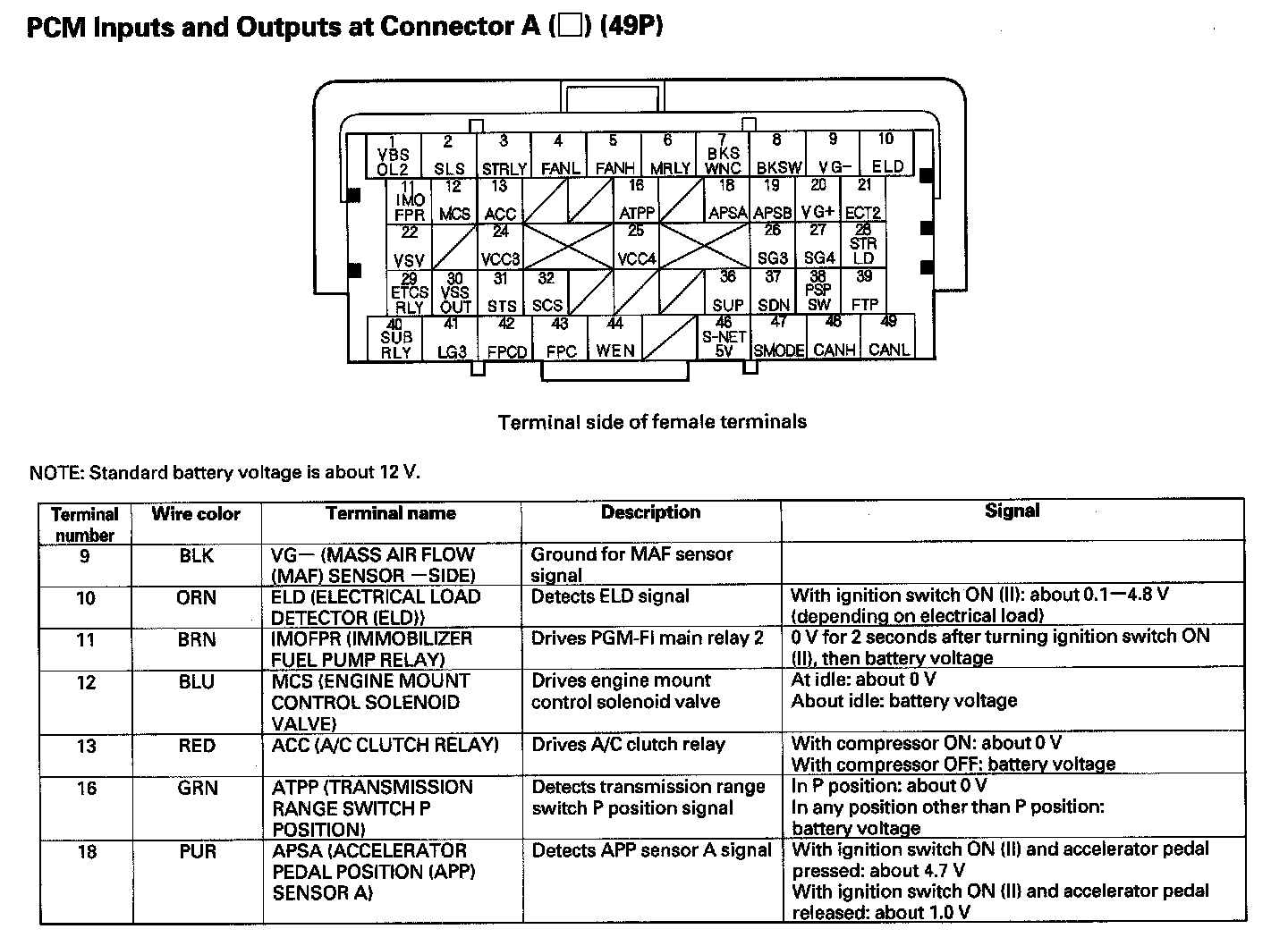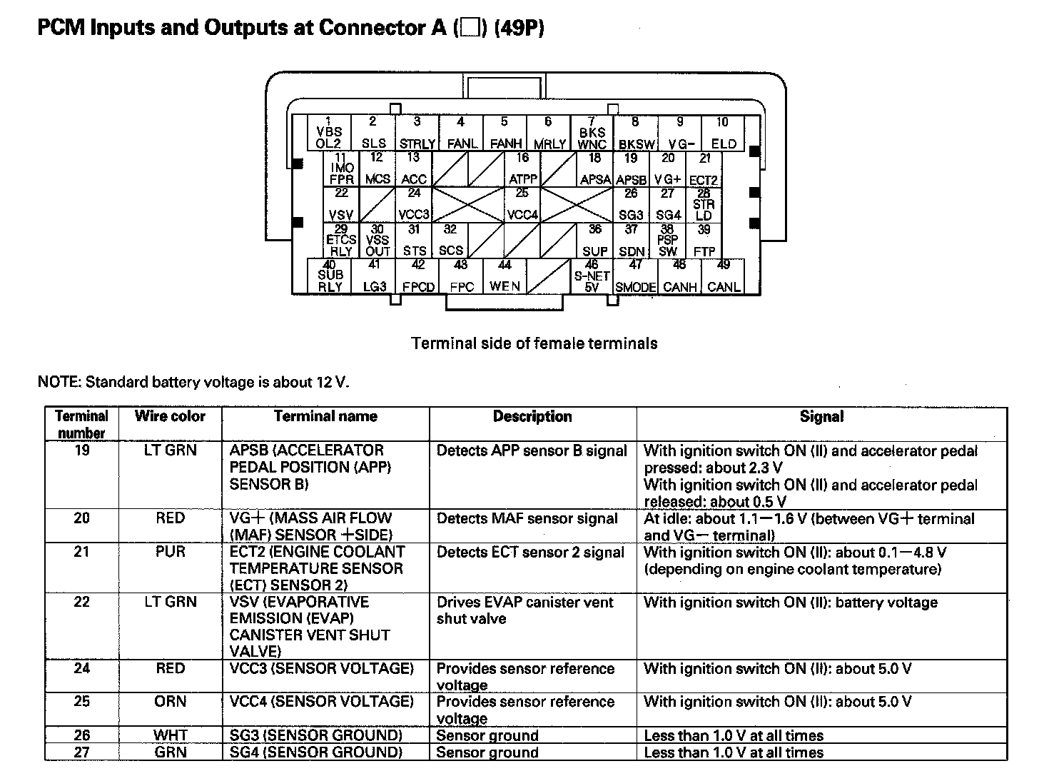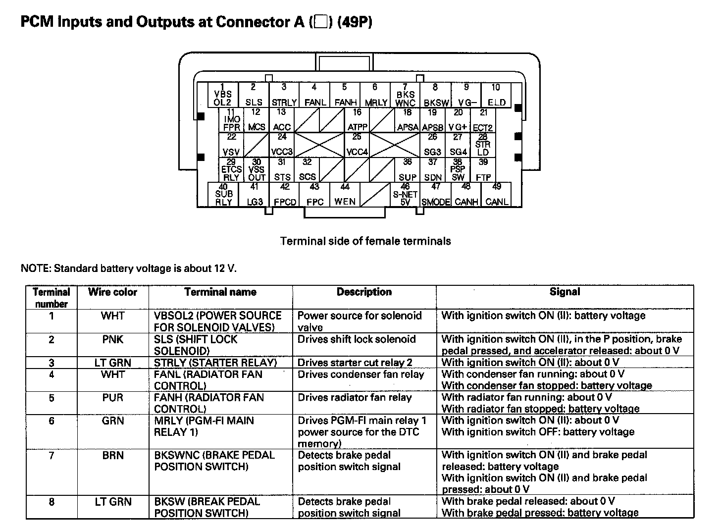 PCM Inputs And Outputs At Connector A (49P) Part 1: