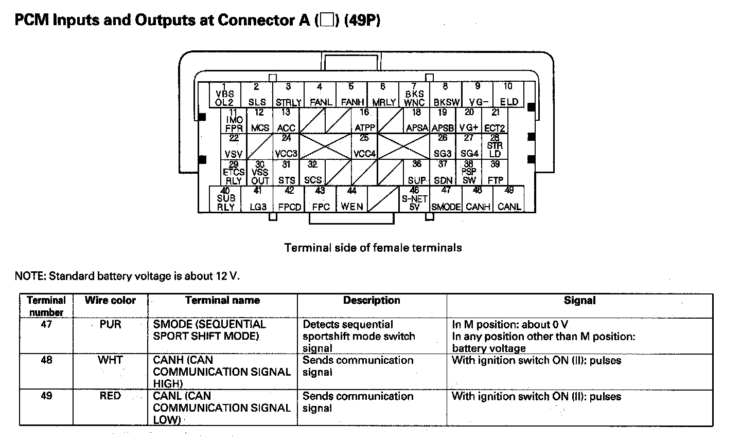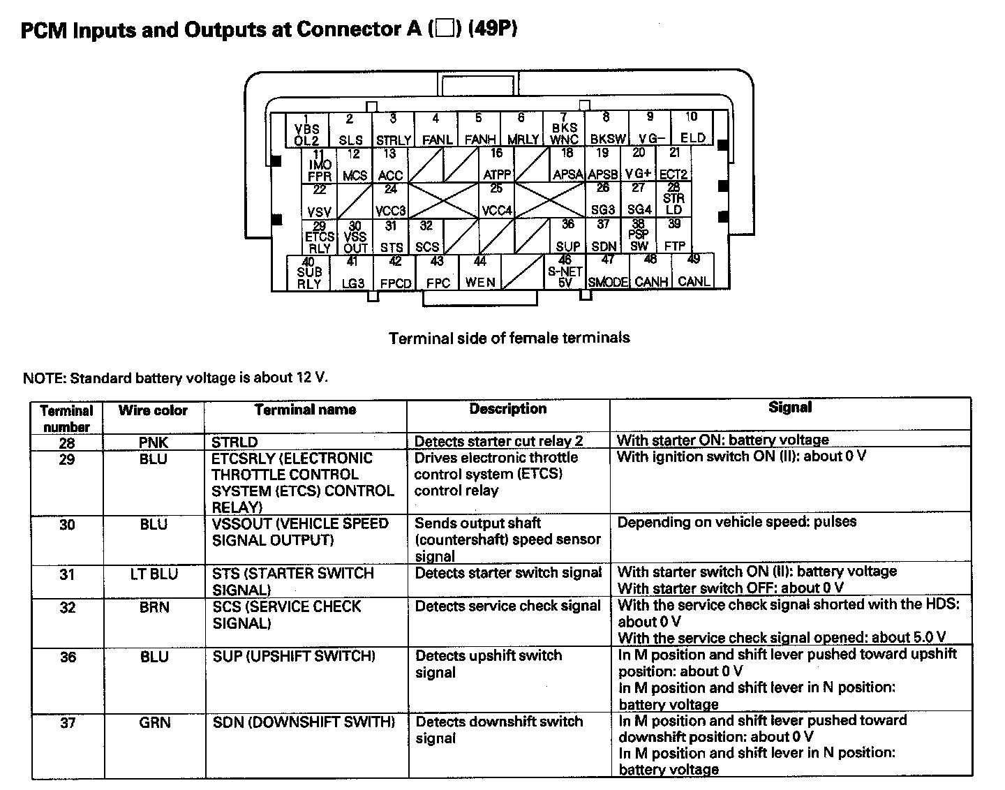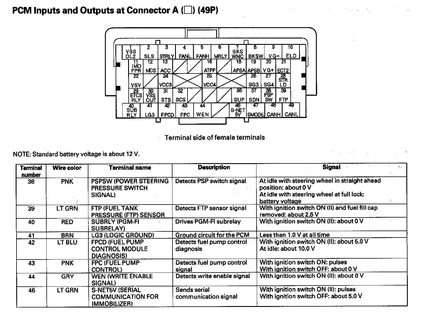 PCM Inputs And Outputs At Connector A (49P) Part 4:
