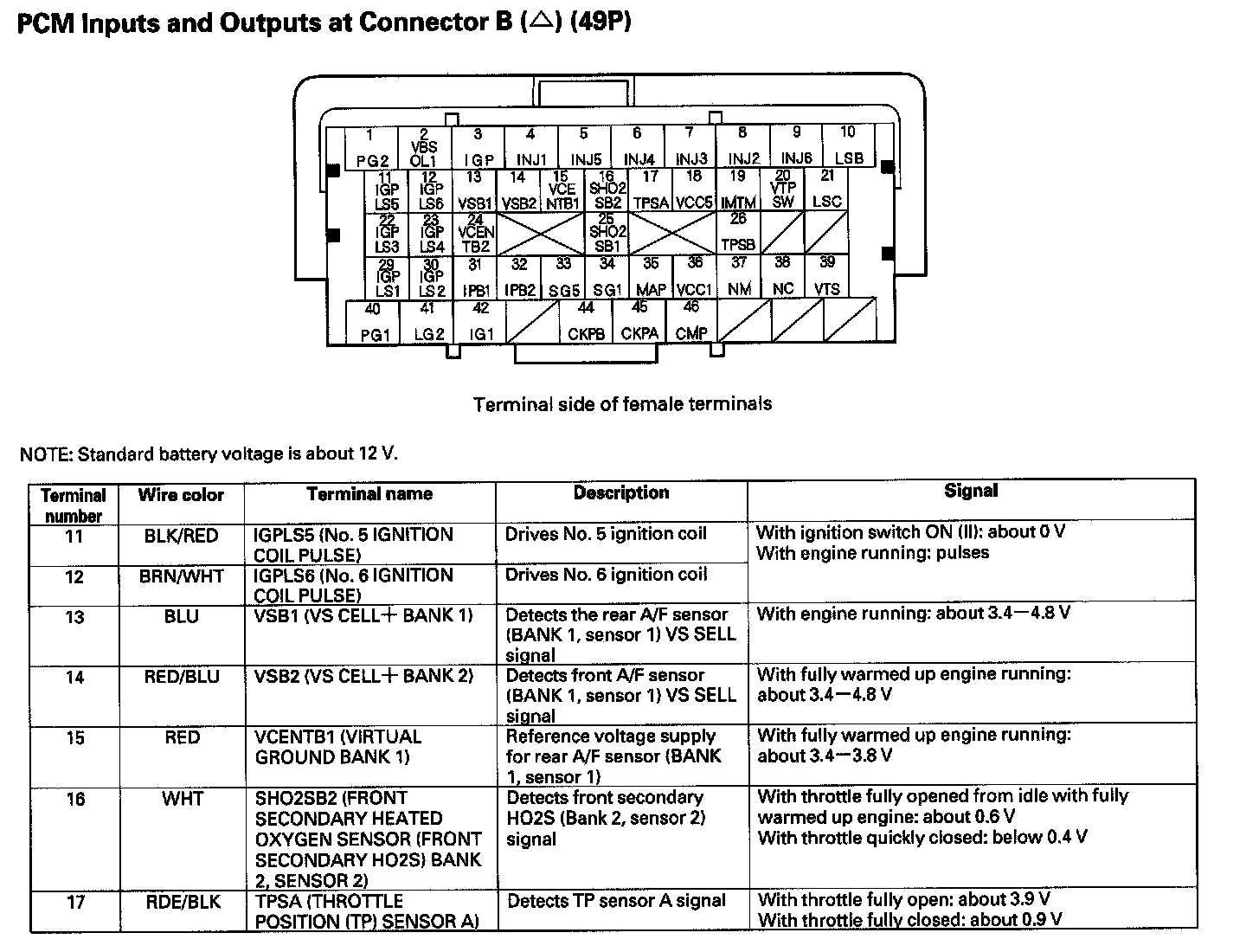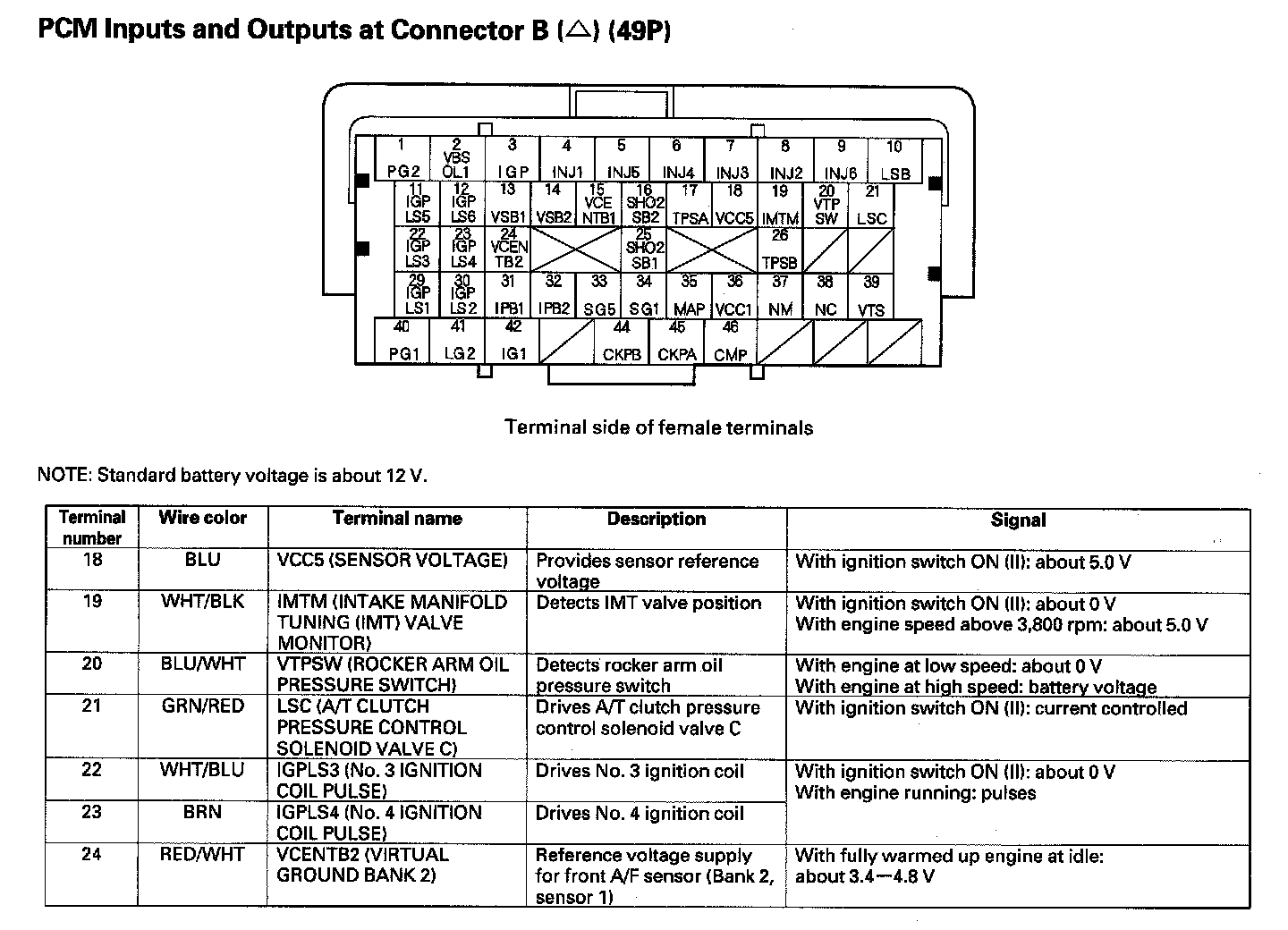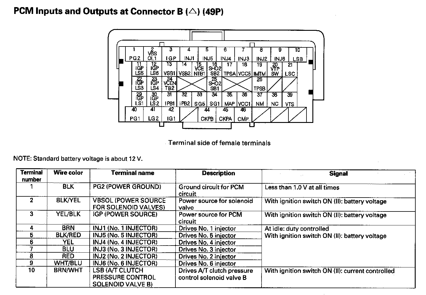 PCM Inputs And Outputs At Connector B (49P) Part 5: