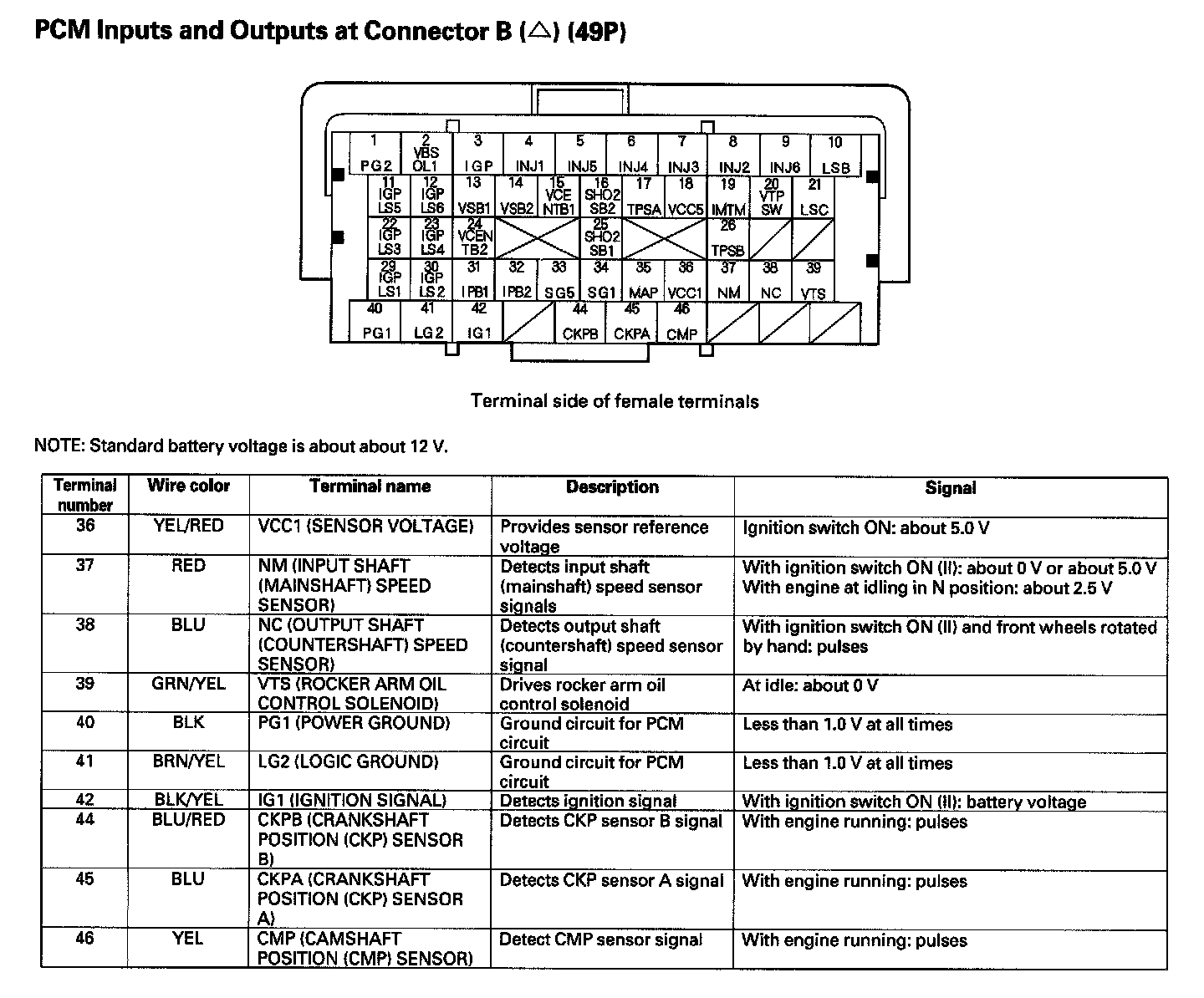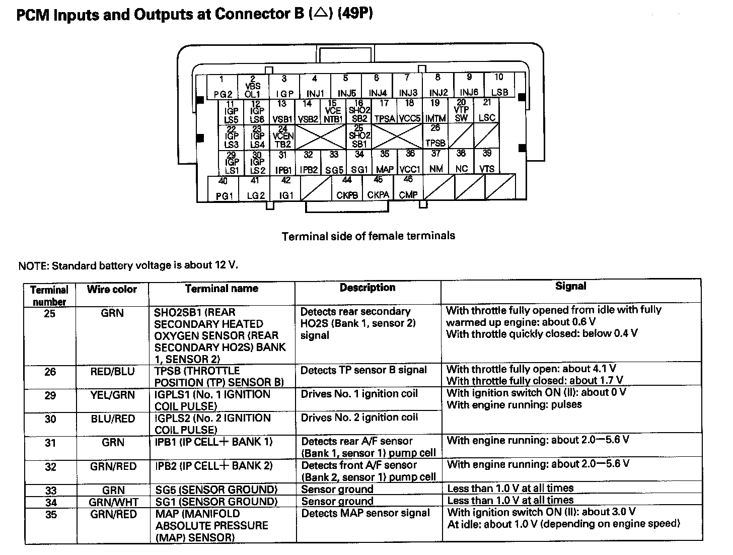 PCM Inputs And Outputs At Connector B (49P) Part 4: