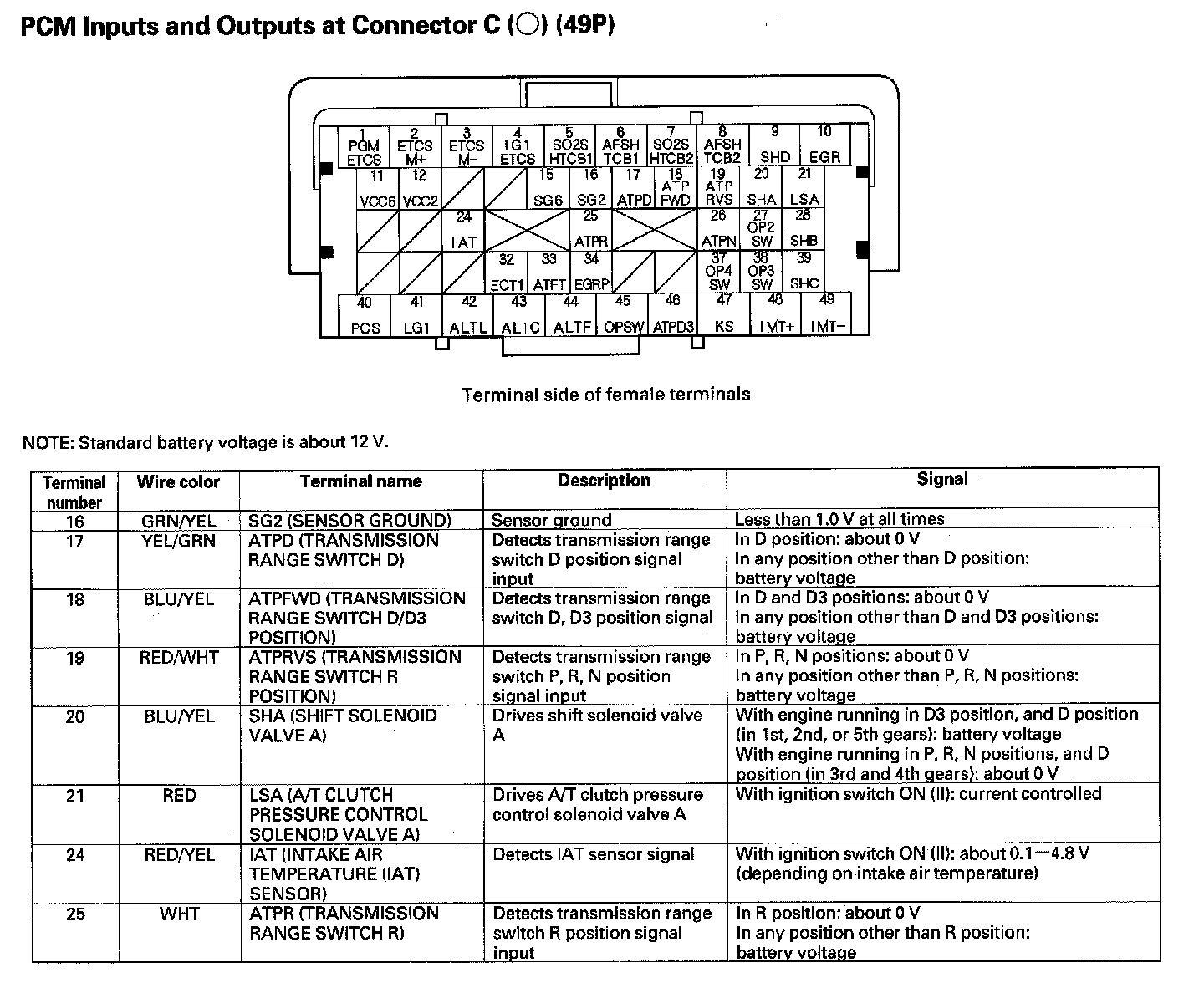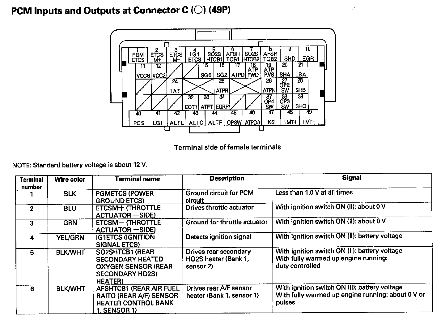 PCM Inputs And Outputs At Connector C (49P) Part 1: