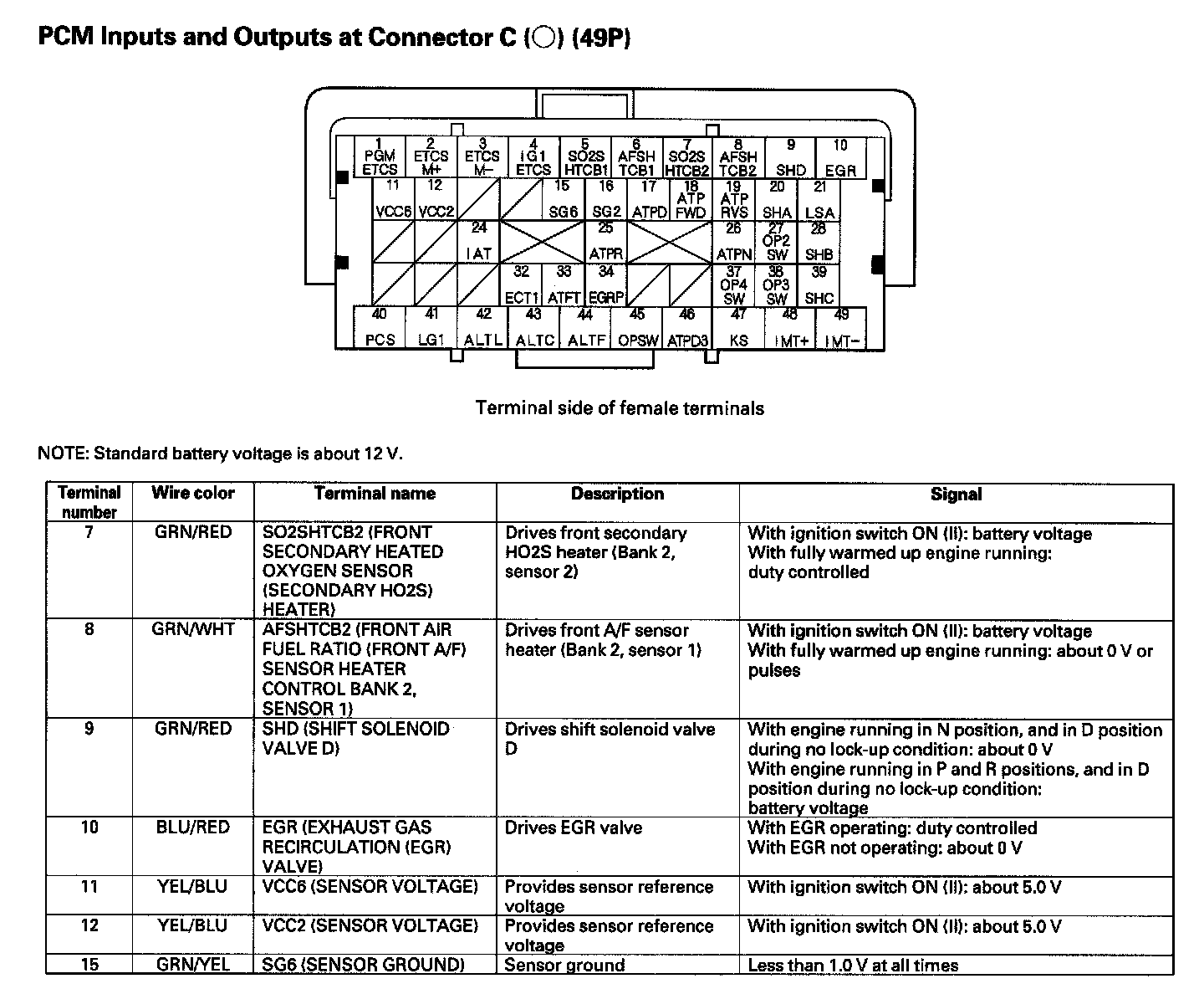 PCM Inputs And Outputs At Connector C (49P) Part 5: