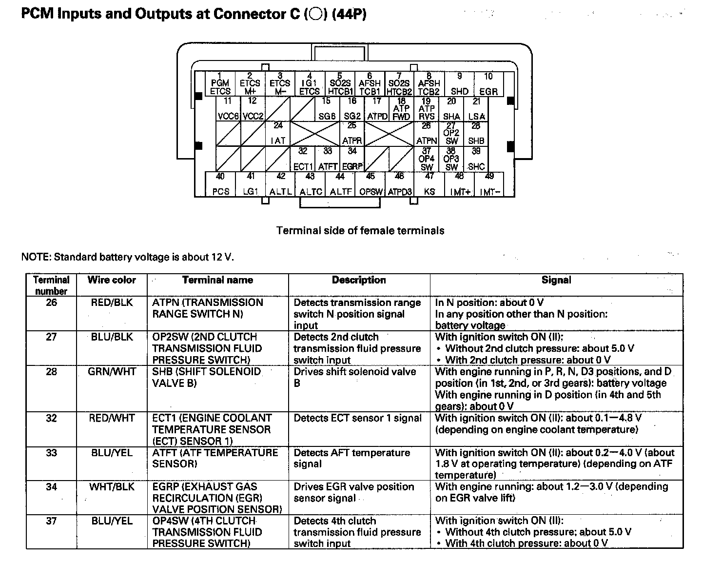 PCM Inputs And Outputs At Connector C (44P):