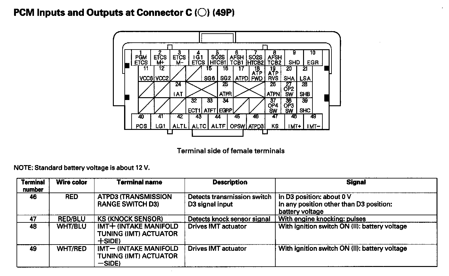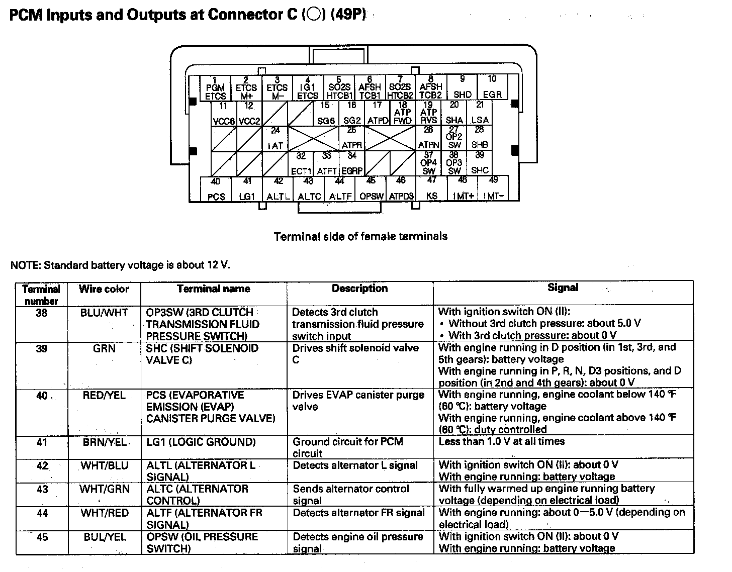 PCM Inputs And Outputs At Connector C (49P) Part 3: