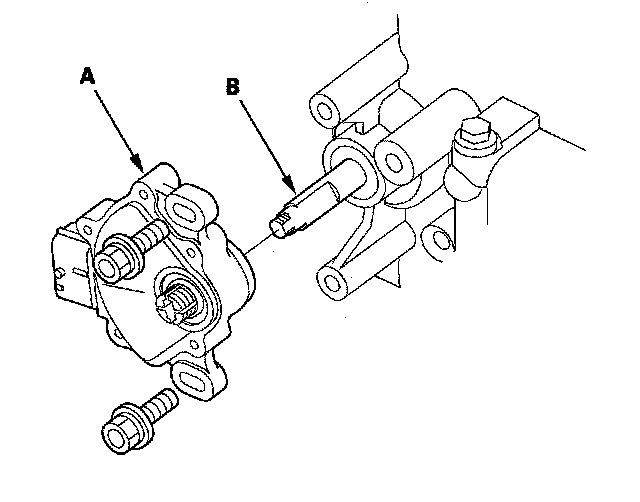 16. Install the transmission range switch (A) gently over the control shaft (B) and install the bolts loosely.