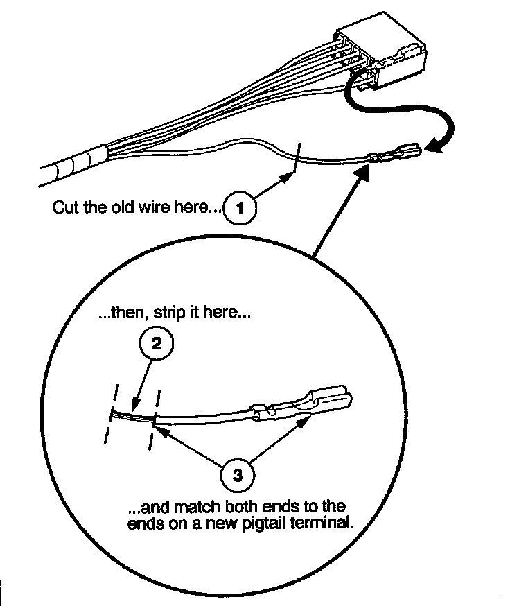 3. Select a pigtail terminal that matches the original wire at both ends (same kind of terminal and same diameter bare wire).