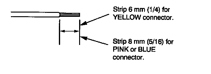7. If you are using a yellow splice connector, strip about 6 mm (1/4 inch) of insulation off the ends of both wires. If you are using a pink or blue splice connector, strip off about 8 mm (5/16 inch) of insulation.