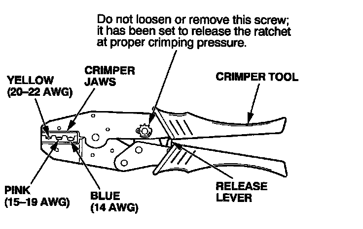 8. Put the splice connector in the proper size slot in the Crimper Tool, slide it to one end (where the flare begins), and close the crimper handles far enough to hold it in place. To release the ratchet mechanism at any point after the first click, squeeze the handles slightly and push the release lever, then let the handles open.